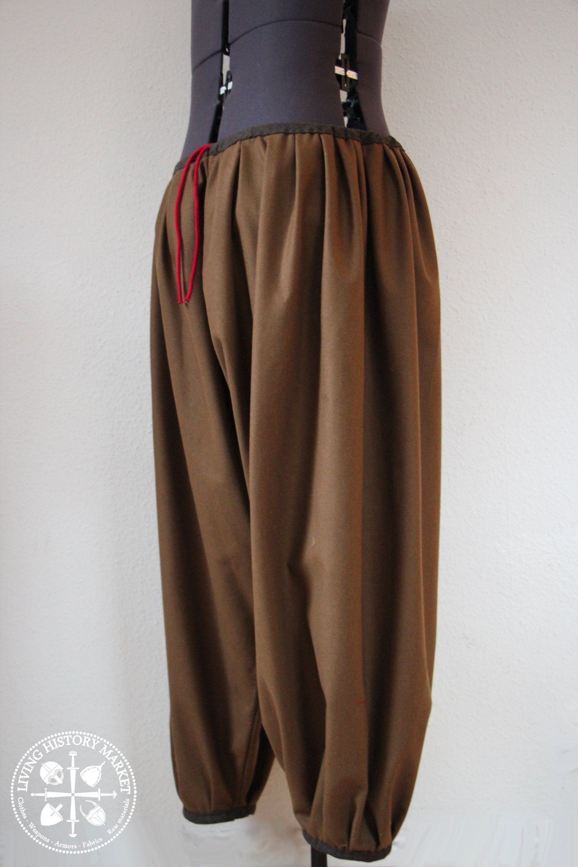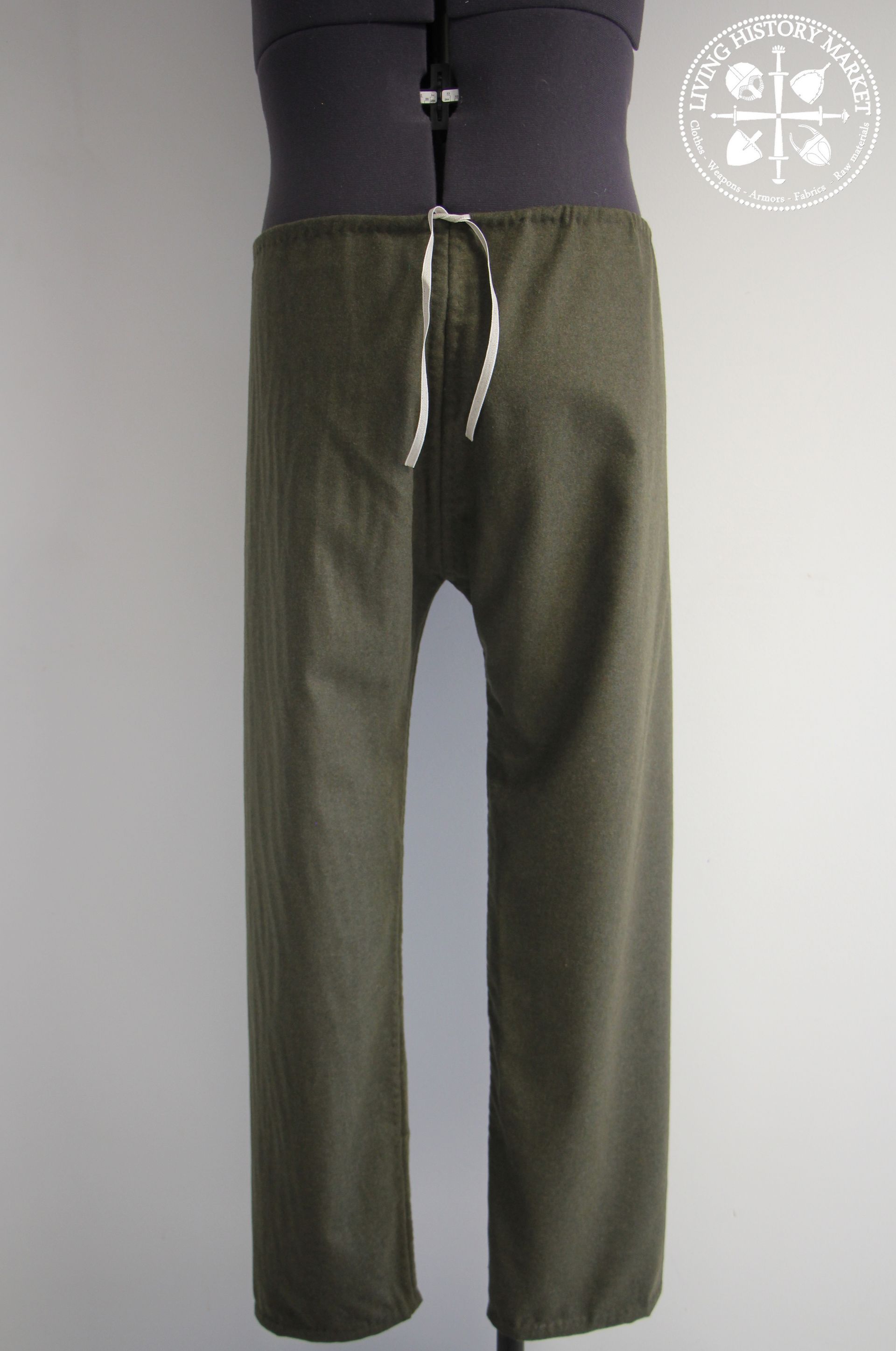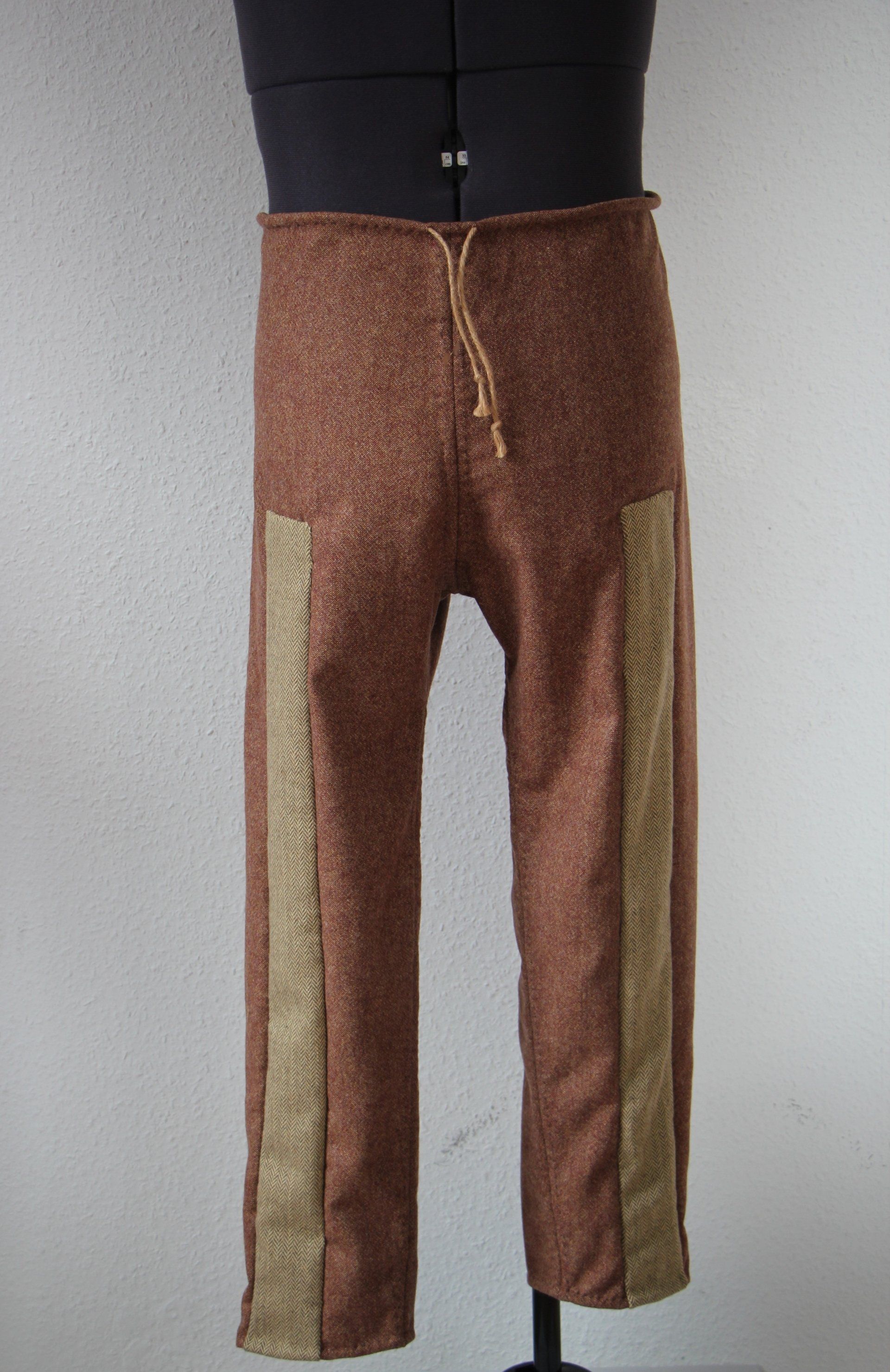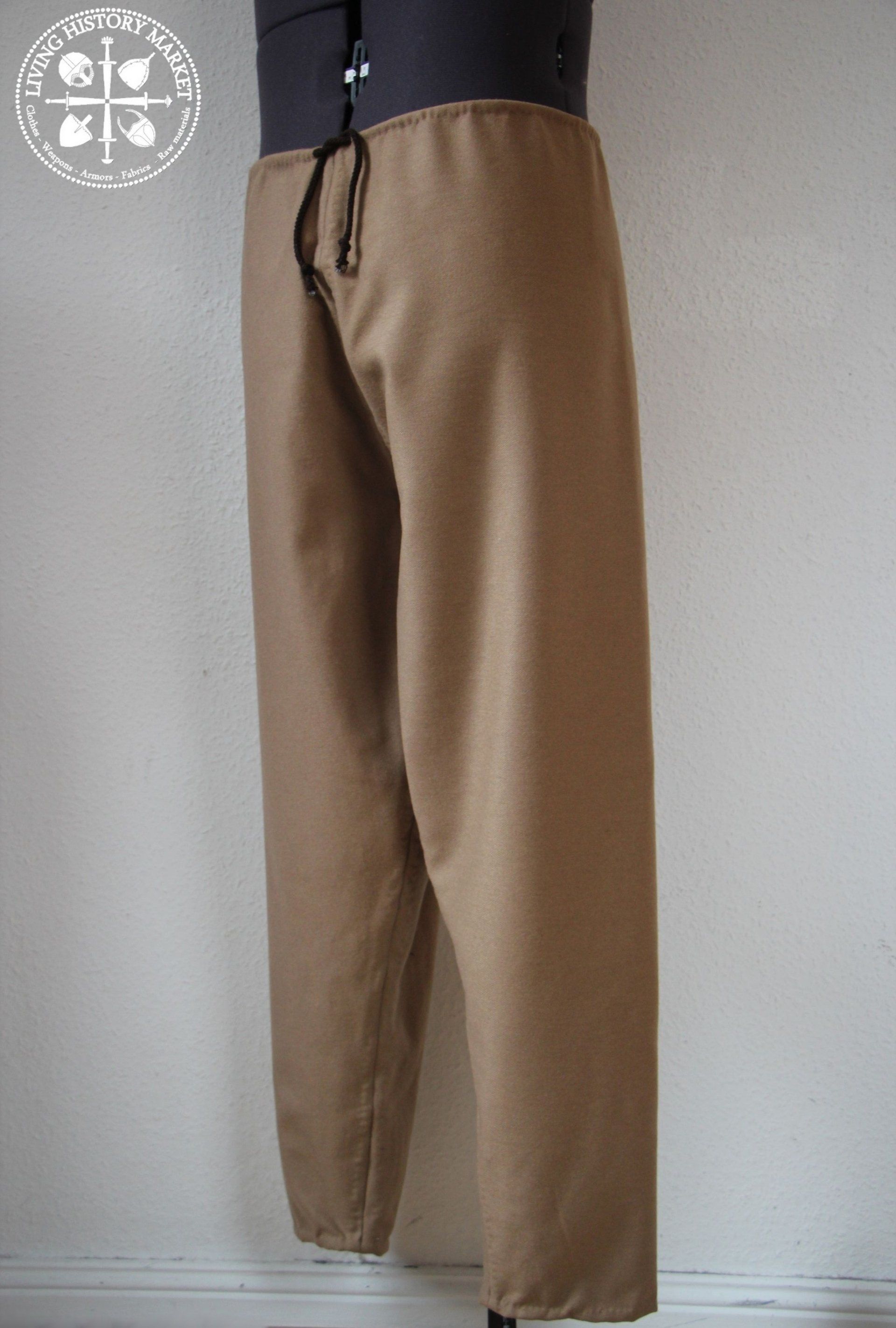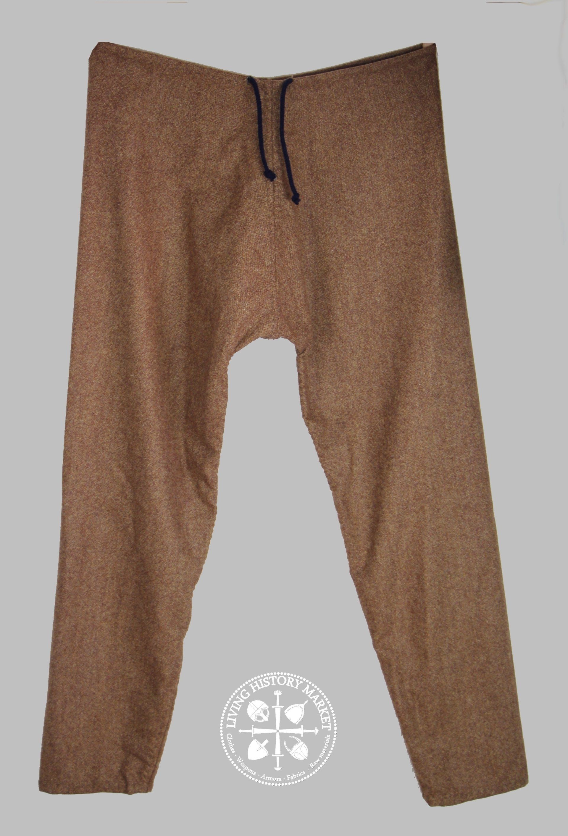 These pants, with a relatively straight or fitted cut, were probably the most common type of pants throughout temperate Europe in the early Middle Ages. Simple, effective. They can be combined with male garters.