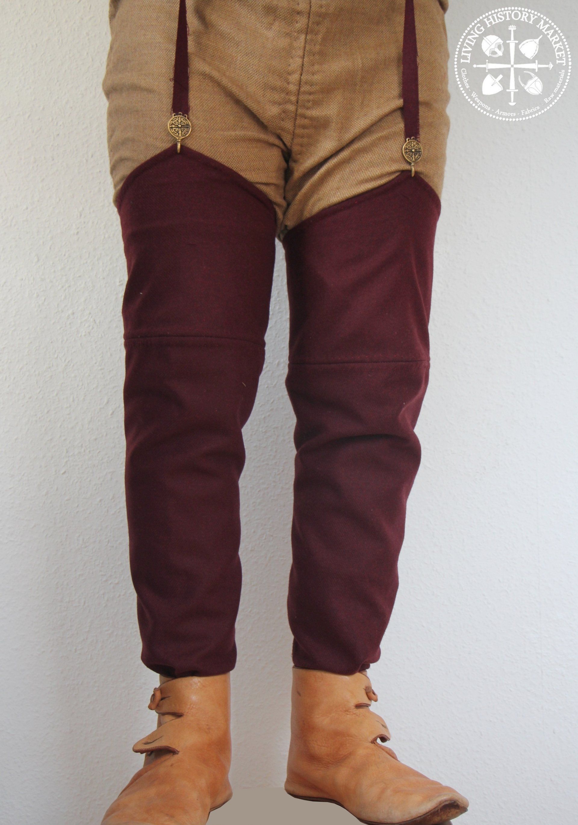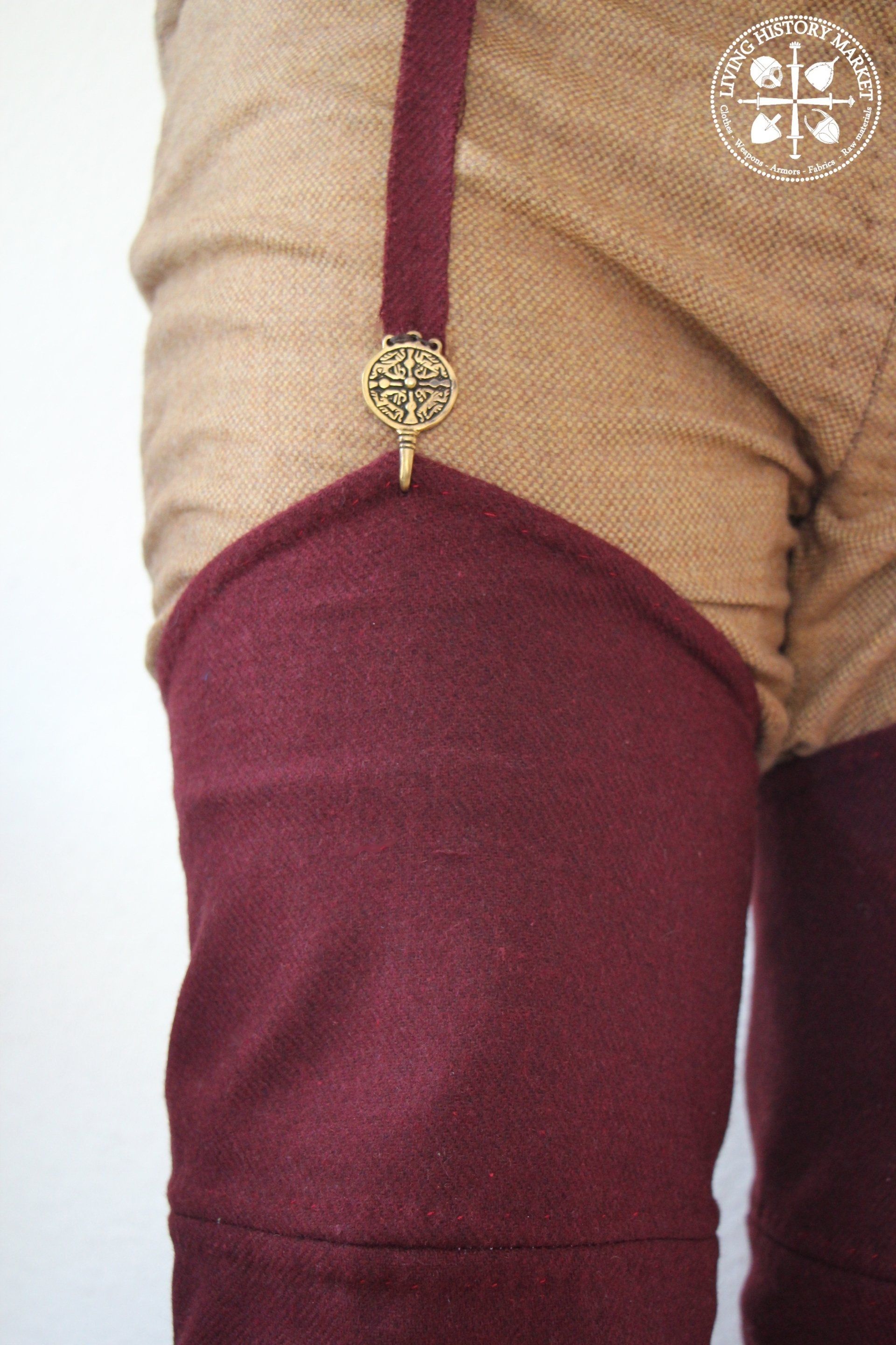 Decorative, or practical, for work in the fields, they are fixed using laces, from the thigh to the belt. Additionals "garters belts" are known by archaeology, and iconography. These belts are wrapped around the calves.